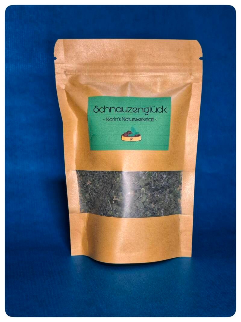 "Schnauzenglück" ist eine liebevoll zusammengestellte, natürliche Kräuter-Mineralstoff-Mischung zur Unterstützung der Maulhygiene bei Hunden.